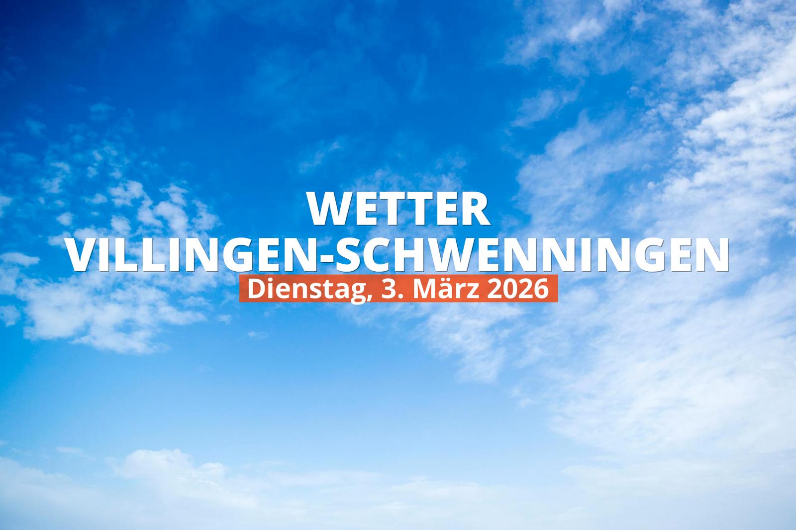 Heute in Villingen-Schwenningen - Wetter in Kürze (Dienstag, 3. März 2026) Der Dienstag in Villingen-Schwenningen wird kühl. Zum wärmsten Zeitpunkt des Tages, gegen 14:00 Uhr, werden 12°C erreicht. Die Tiefsttemperatur wird gegen 5:00 Uhr erreicht und liegt dann bei -1°C.