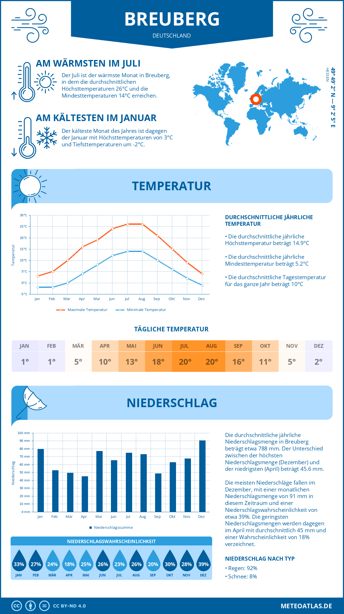 Infografik: Klima sowie monatliche Durchschnittstemperaturen und Niederschläge