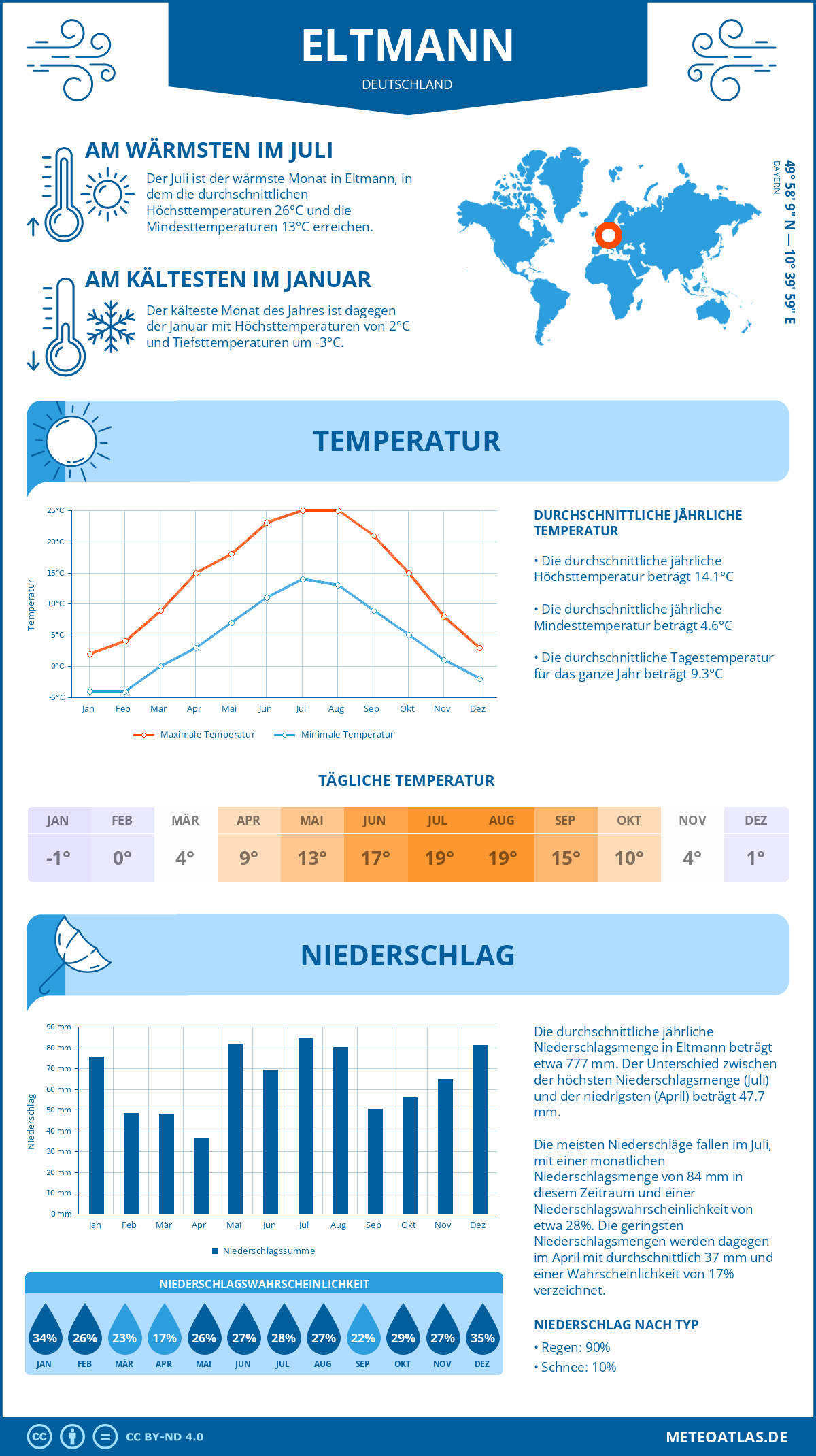 Infografik: Klima sowie monatliche Durchschnittstemperaturen und Niederschläge