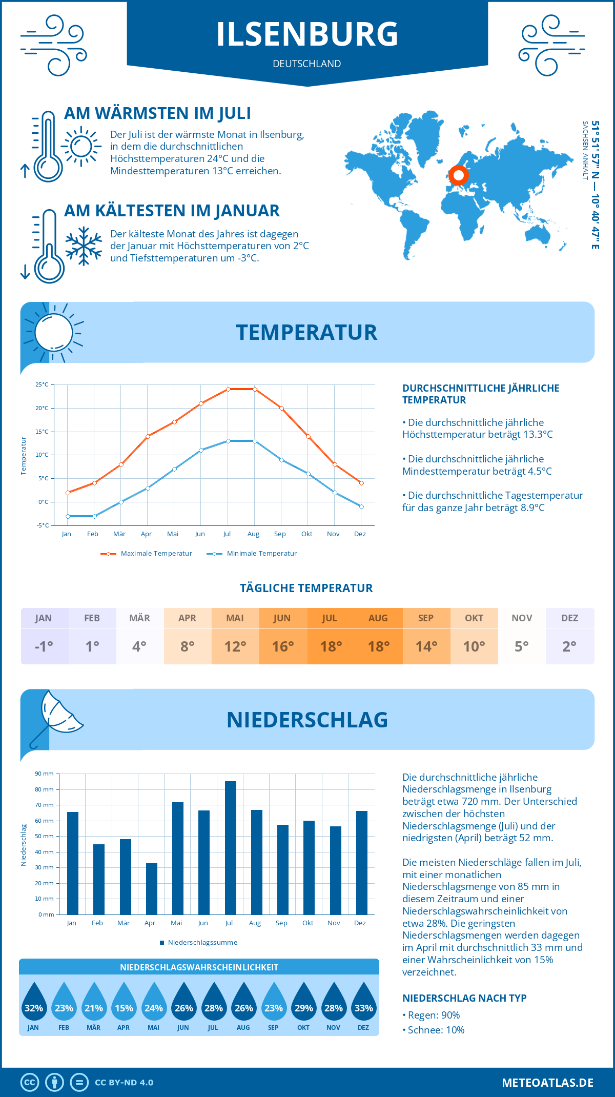 Infografik: Klima sowie monatliche Durchschnittstemperaturen und Niederschläge