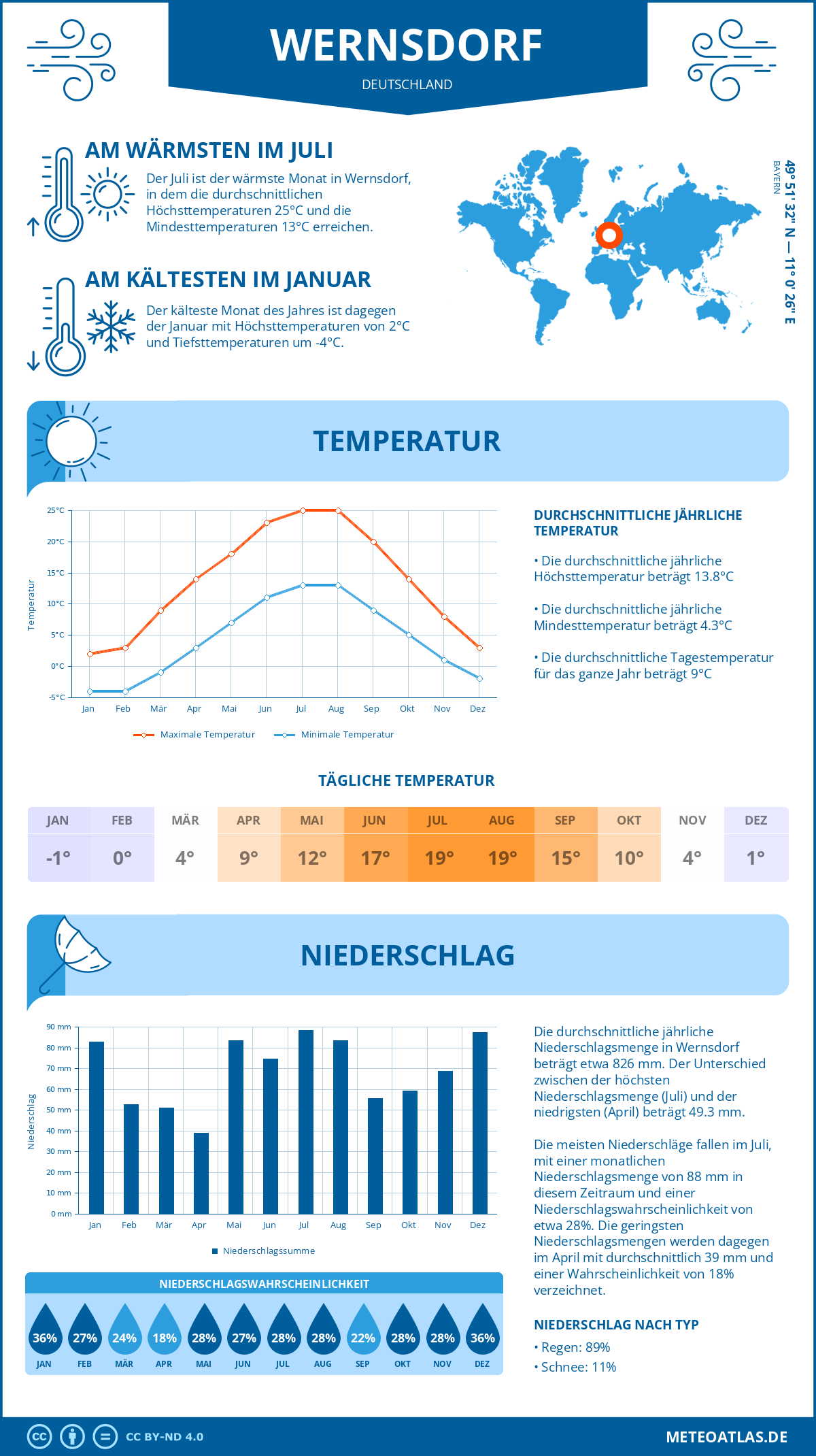 Infografik: Klima sowie monatliche Durchschnittstemperaturen und Niederschläge