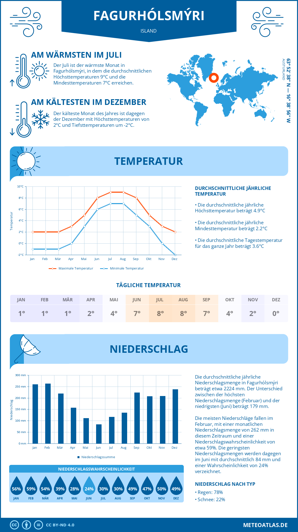 Infografik: Klima sowie monatliche Durchschnittstemperaturen und Niederschläge