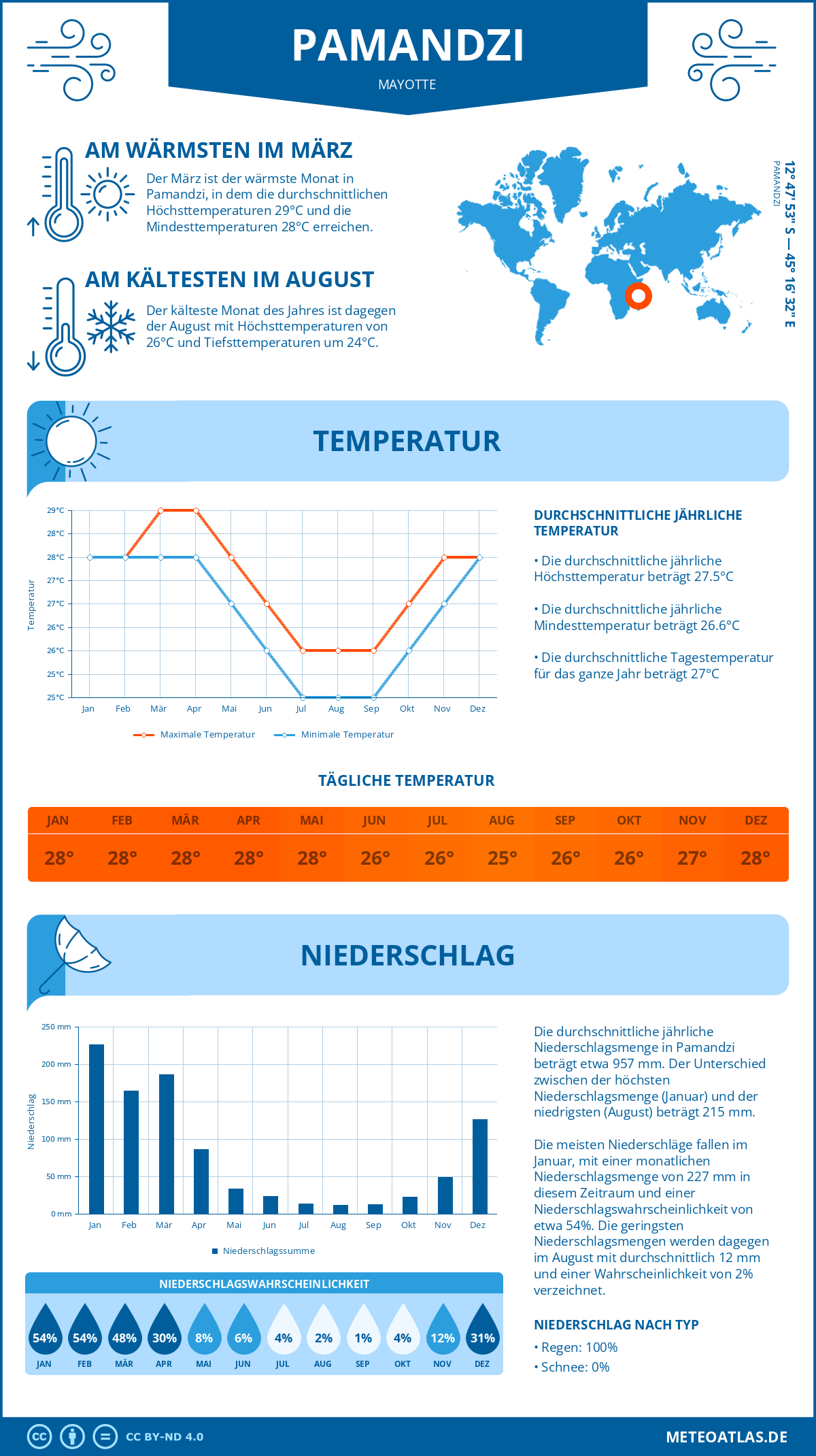 | Mai | 28°C | 27°C |