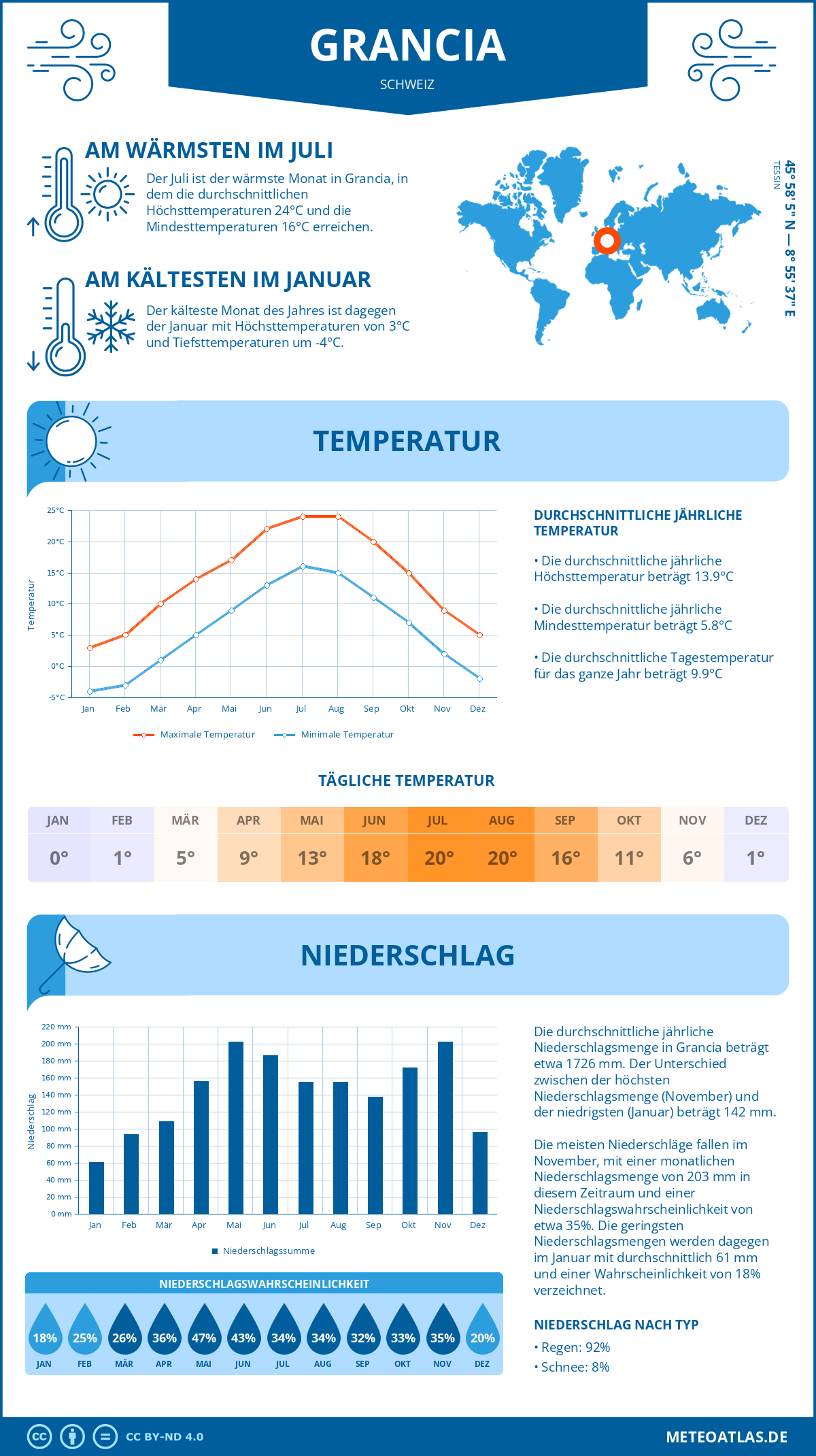 Infografik: Klima sowie monatliche Durchschnittstemperaturen und Niederschläge