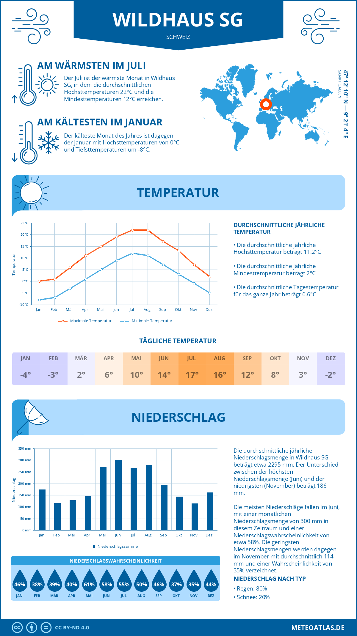 Infografik: Klima sowie monatliche Durchschnittstemperaturen und Niederschläge