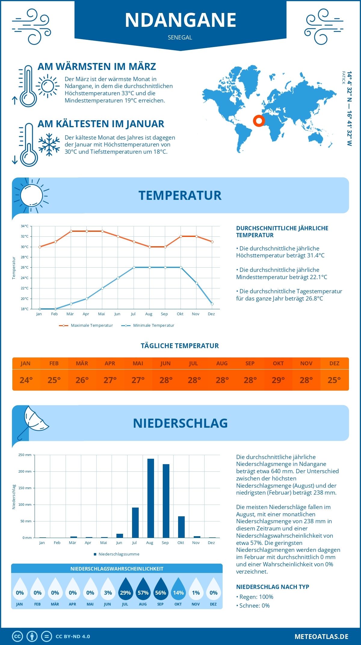Ndangane (Senegal) - Wetter und Klima im Jahresverlauf: Durchschnittswerte für Temperatur und Niederschlag