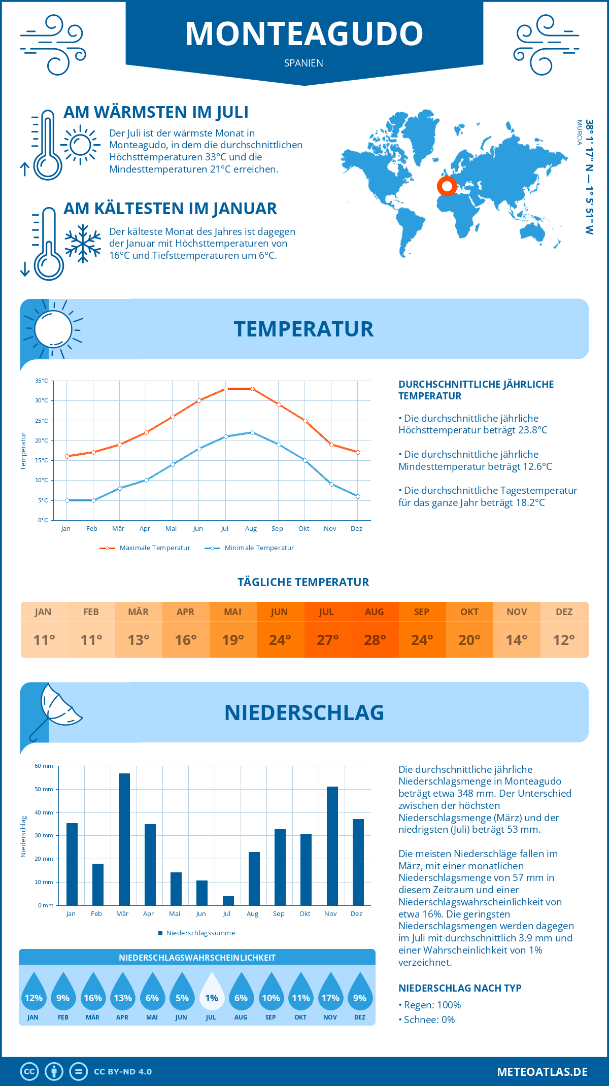 Infografik: Klima sowie monatliche Durchschnittstemperaturen und Niederschläge
