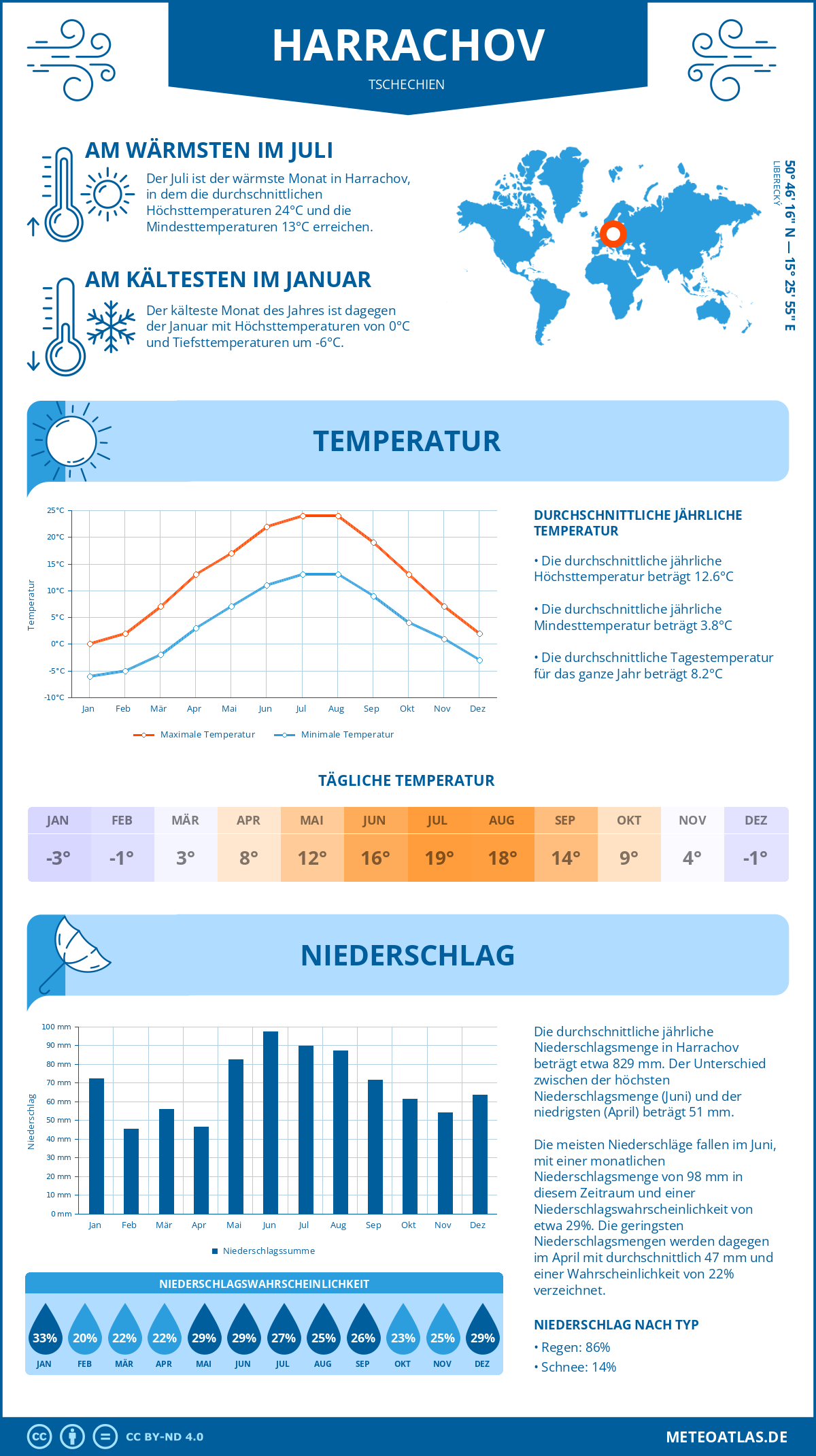 Infografik: Klima sowie monatliche Durchschnittstemperaturen und Niederschläge